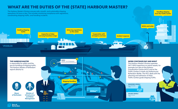 This department is responsible for matters such as policy development, risk management, planning and measures to protect shipping and the port area, but also the Port of Rotterdam Authority itself.