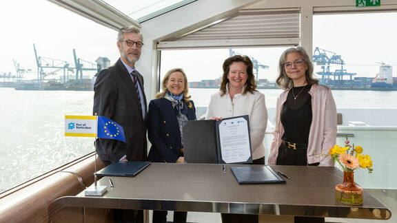 “Het huidige geopolitieke tijdsgewricht dwingt ons als Europa tot belangrijke keuzes om concurrerend te blijven en tegelijk energie-onafhankelijk te worden. Voor de haven van Rotterdam, als grootste van Europa, is verduurzaming van het transport een essentiële voorwaarde om hierbij aangehaakt te blijven. Met CEF-subsidies (Connecting Europe Facility) draagt de Commissie bij aan de ambitieuze uitrol van infrastructuur voor alternatieve brandstoffen die daarvoor nodig is”, voegde Cecilia Thorfinn, interim hoofd van de Vertegenwoordiging van de Europese Commissie in Nederland toe.