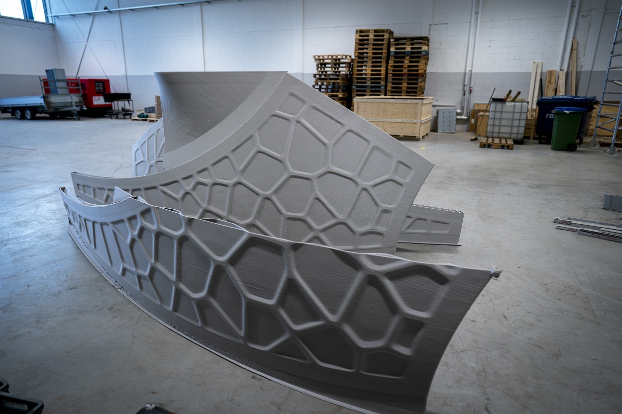 Daarvoor wordt niet zomaar een 3D-printer gebruikt, maar een CFAM-printer die voor Royal 3D is gebouwd door CEAD in Delft. CFAM staat voor Continuous Fibre Additive Manufacturing. Dit betekent dat continu een (glas-)vezel toegevoegd wordt aan het printmateriaal. Dat levert een sterker, stijver en daarmee duurzamer eindresultaat op. De CFAM-printer van Royal 3D kan produceren op de industriële schaal met een bouwvolume van 4 x 2 x 1,5 meter en een printcapaciteit van 15 kilo per uur.